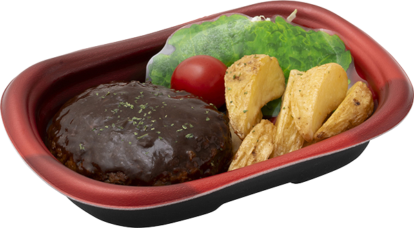 | 原材料 | ハンバーグ(国内製造)、デミグラスソース、ポテトフライ、キャベツ、ミニトマト、食用油脂、食塩 |