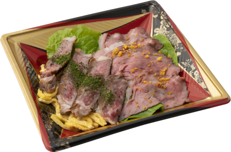 米、掛川牛、ローストビーフ、玉子シート、グリーンリーフ、みかんの皮、抹茶、和風ごま油、オリーブオイル