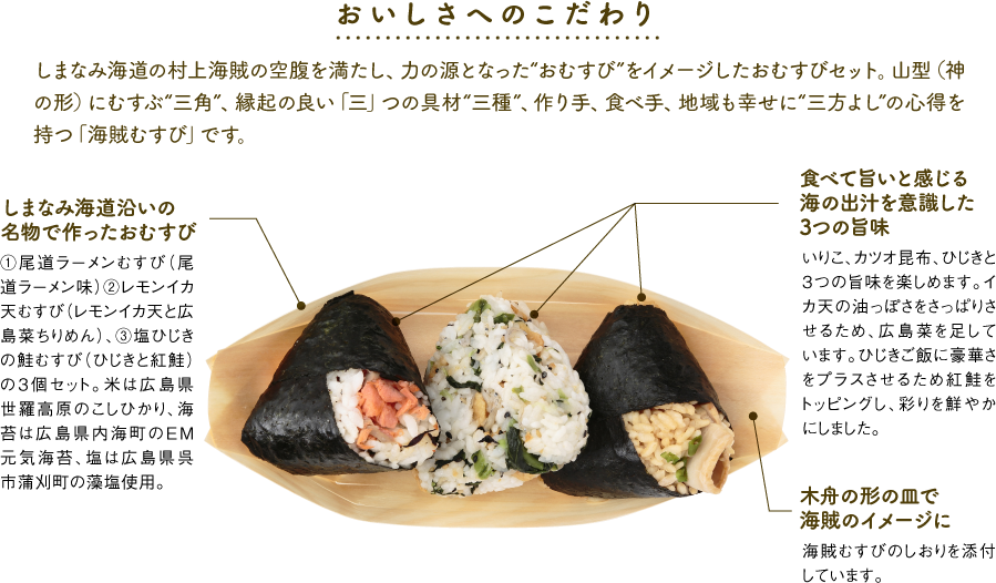 米(国産)、焼豚、ラーメンスープ、広島菜ちりめん、レモンイカ天、紅鮭、塩ふきひじき、葱、海苔(国産)、藻塩