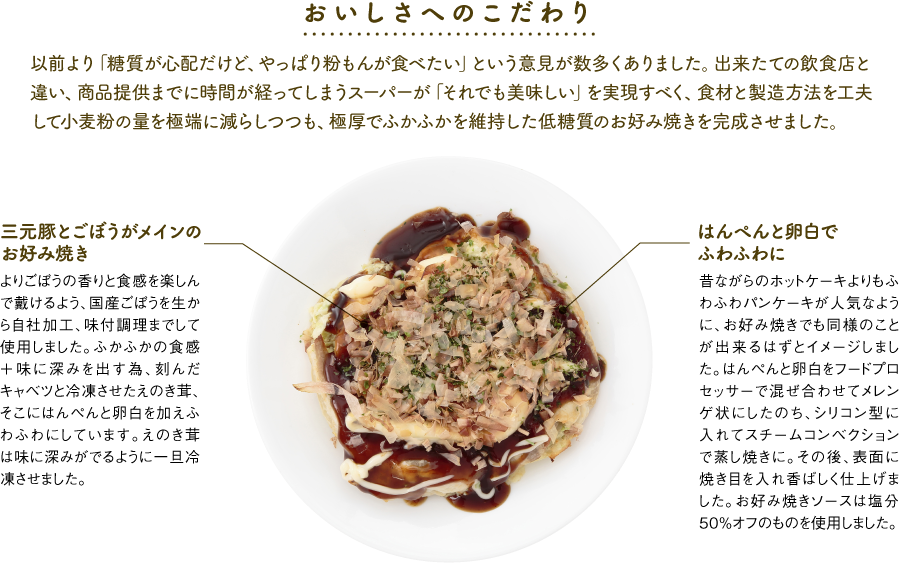 キャベツ、はんぺん、鶏肉、豚肉、きんぴらごぼう、寒天、鰹節、マヨネーズ、お好み焼きソース、調味料(アミノ酸等)