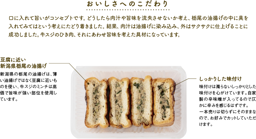 油揚げ、油、大豆、ネギ、ニラ、えのき、ひき肉、塩、ニンニク、唐辛子、鰹節、砂糖、醤油、牛
