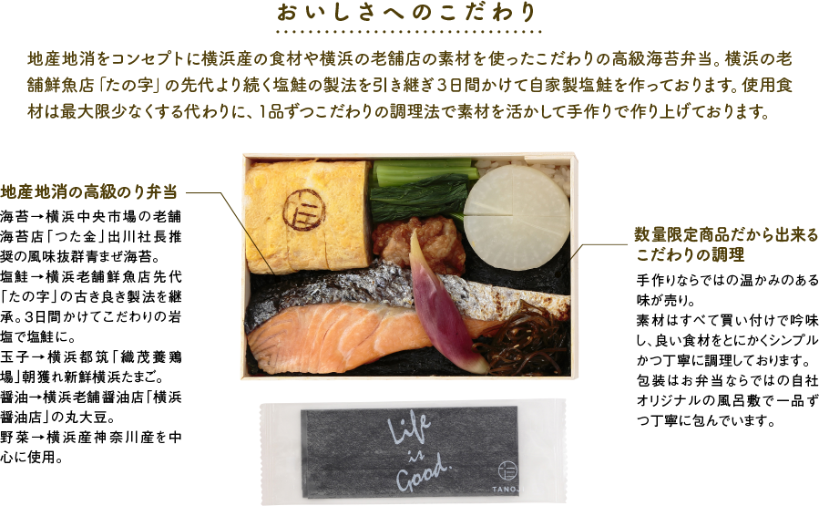 米、塩鮭、大根、鶏肉、鶏卵、昆布、小松菜、上白糖、醤油、みょうが、海苔