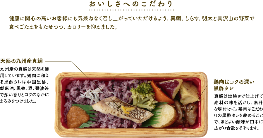 | 原材料 | 黒米塩飯(国産米使用)、さつま芋、鶏肉、じゃが芋、人参、ブロ ッコリー、真鯛、チキンエキス、辛子明太子、砂糖、醤油、釜あげしらす(イワシ稚魚、食塩)、清酒、澱粉、食塩、大豆油、ゆず、香酢、食酢、にんにく、生姜、和風調味料(水飴、発酵調味料、魚介エキス、昆布魚介エキス、鰹節、食塩、酵母エキス、昆布)、黒糖、酵母エキス、胡椒、胡麻油、ゼラチン/酸味料、pH調製剤、紅麹色素、酸化防止剤(V.C)、増粘多糖類、ウコン色素 |