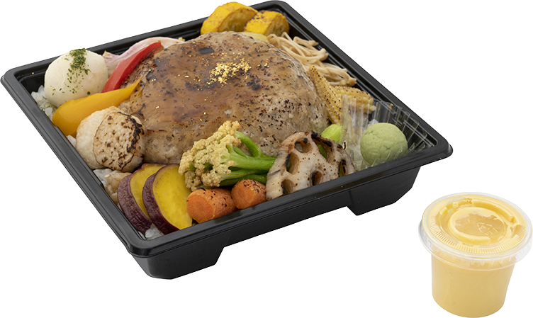 冷えても柔らかい特殊焼き【黄金バーグ】。テイクアウトで日本一大きい?見てもびっくり、食べてびっくり。ハンバーグ?いやつくね?いや違います【黄金バーグ】です。新食感、新感覚、2種のソースで2度美味しい丼です。