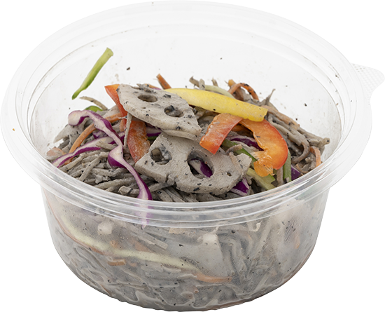 | 原材料 | "ごぼう(中国)、蓮根、大根、人参、マヨネーズ( 卵・大豆を含む)、砂糖、ねりごま、パプリカ、紫キャベツ、ごま、味噌、ガラスープ(食塩、デキストリン、チキンエキス、その他)、きゅうり、ごま油、醸造酢、みりん、炭焼きたれ(小麦・豚肉を含む)、昆布だし調味料、食塩、唐辛子、胡椒/増粘剤(加工デンプン、キサンタンガム)、調味料(アミノ酸等)、酢酸Na、乳化剤、香料、着色料(カラメル、炭末色素)、香辛料抽出物" |