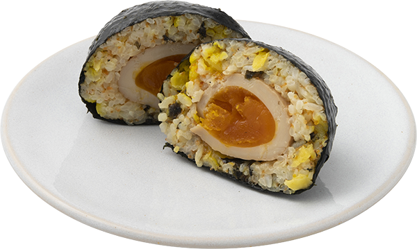 甘辛いタレの中に刻んだ香味野菜と半熟ゆで卵を一緒に入れて一晩漬け込んだ、『麻薬卵(中毒性のある美味しさの意味)』という名の韓国版味付きたまごがSNS上で話題になり、早速作ってご飯に乗せて試食してみると非常に美味しかったので、それをそのままおにぎりの具にアレンジしました。