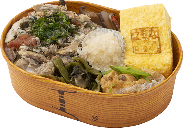 宮城県石巻港で水揚げされた金華鯖を丁寧に焼きほぐし、手焼きの出汁巻き玉子に奈良県産の野菜を使ったお惣菜を添えました。地元のお客様はもちろん観光客の方にもお楽しみいただけるよう、小さい容器に奈良をたくさん詰め込んだお弁当に仕上げました。