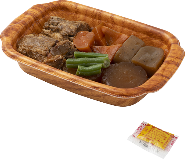 | 原材料 | 豚軟骨(沖縄産)、大根、煮物のたれ、生芋こんにゃく、人参、塩?、いんげん、加工黒糖、おろし生姜、風味調味料(かつお) |