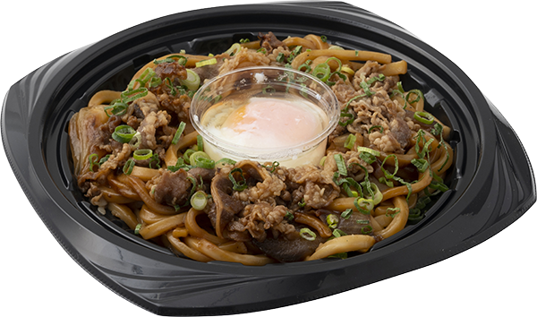 讃岐うどん(国内製造)、タレ、卵、牛バラスライス、玉葱、ねぎ、食油/加工デンプン、カラメル色素、シリコーン、増粘剤(加工デンプン、タマリンド)、調味料(アミノ酸等)(一部に小麦・卵・牛肉・大豆を含む)