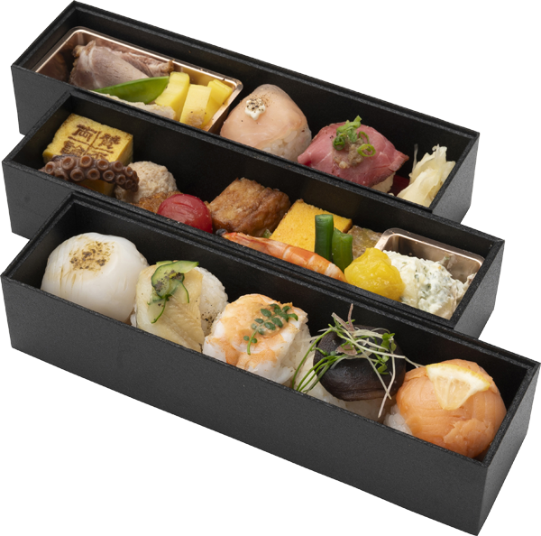 | 原材料 | 酢飯(国産米)、豚柚庵焼、鰆西京焼、生ハム手毬、牛肉手毬、鮭手毬、煮穴子手毬、烏賊手毬、椎茸手毬、玉子焼、鶏つくね、人参カステラ、キャベツ真丈、鶏松風、海老と隠元の旨煮、牛蒡おかき揚、薩摩芋檸檬煮、青菜の胡麻和、岩蛸煮、いぶりがっことマスカルポーネのポテトサラダ、杏トマト、ガリ、ダシ醤油/保存料(安息香酸Na)(一部に卵・小麦・乳成分・エビ・大豆・牛肉・豚肉・鶏肉・さけ・いか・ごま・くるみを含む) |