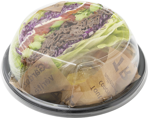 | 原材料 | レタス、牛肉(国産和牛)、レッドキャベツ、トマト、ブロッコリー、スライスチーズ、チリソース( 赤唐辛子、砂糖、醸造酢、にんにく、食塩)、フルーツソース(パイナップル、キウイ、レモン汁、砂糖) |
