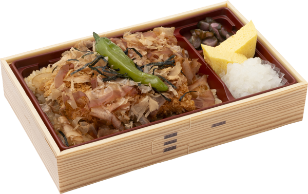 | 原材料 | だしご飯(国産米使用)、豚肉、玉子焼、大根おろし、パン粉、ししとう、植物油脂、漬物、フライ用調味料、かつおぶし、ごま、海苔/加工澱粉、トレハロース、増粘剤(加工澱粉、増粘多糖類)、酢酸Na、グリシン、調味料(アミノ酸等)、酸味料、pH調整剤、着色料(野菜色素)、カゼインNa、イーストフード、V.C、酒精、(一部に小麦・卵・乳成分・ごま・大豆・豚肉・りんごを含む) 別添 天つゆ(小麦・さば・大豆を含む) |