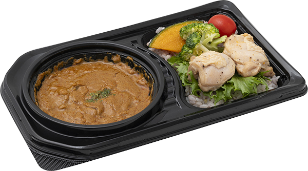 | 原材料 | 雑穀ご飯、カレー、鶏モモ漬込み肉(鶏肉 、植物油、食塩、コショウ、その他)、ブロッコリー 、かぼちゃ、レタス、トマト、植物油、パセリ/調味 料(アミノ酸等)、増粘剤(加工澱粉)、着色料(カ ロチノイド)、乳化剤、香辛料、酸化防止剤(V.C 、V.E)、(一部にえび・乳成分・カシ ューナッツ ・ごま・大豆・鶏肉・りんごを含む)●国産米使用 |