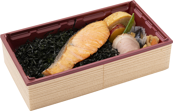 | 原材料 | 米(国産)、塩銀鮭、玉子焼、なすのお浸し、合鴨パストラミ、蓮根金平、おかか、薩摩芋甘露煮、海苔、絹さや、青のり/トレハロース、ソルビット、加工澱粉、グリシン、調味料(アミノ酸等)、リン酸塩(Na)、増粘剤(増粘多糖類、加工澱粉)、V.C、ミョウバン、酸化防止剤(V.C、茶抽出物)、着色料(クチナシ、カラメル)、酒精、酸味料、発色剤(亜硝酸Na) |