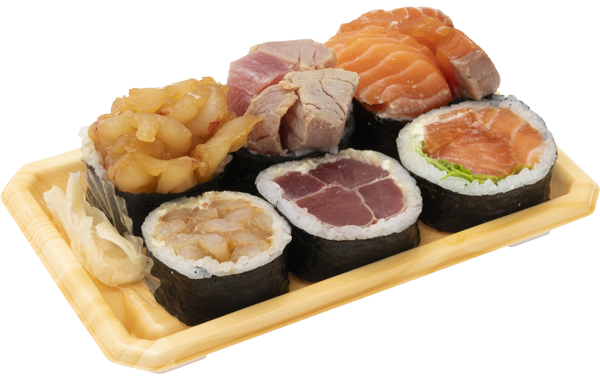 「とにかく具沢山で満足感が高い巻物を」との考えより開発された商品です。魚屋のお寿司と言う事で他の具材でごまかさず、海鮮寿司ネタで勝負し、人気具材のまぐろ、サーモン、赤海老をたっぷり巻き込みました。