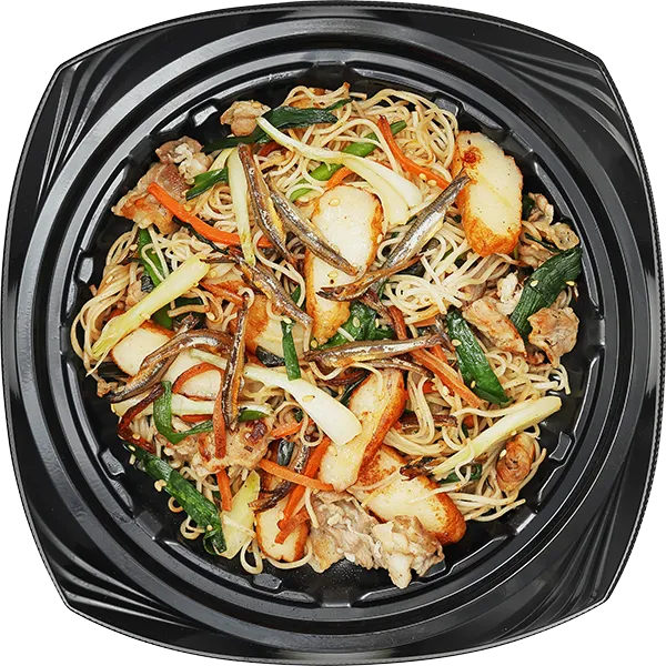 | 原材料 | そうめん(長崎県産)、豚肉、ニラ、島らっき ょ、さつま揚げ(魚肉すり身、豆腐、その他) 、人参、煮干し、醤油、料理酒、サラダ油、ごま油、和風だし(食塩、砂糖、その他)、ごま/調味料(アミノ酸等)、(一部に小麦・豚肉・大豆・ごまを含む) |