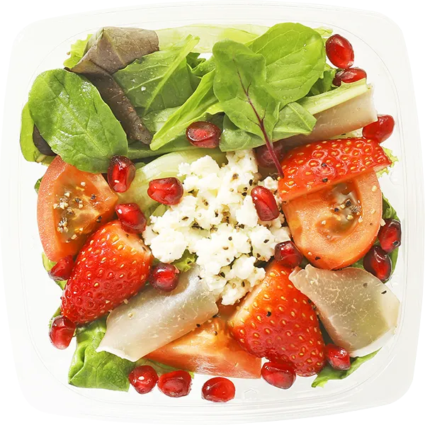 | 原材料 | いちご、トマト、グリーンリーフ、ベビーリーフ、生ハムロース(豚ロース肉、砂糖類、水) 、ザクロ、カッテージチーズ(生乳、塩)、オリーブ油調味料(オリーブ油、なたね油、砂糖、食塩、ぶどう酢、とうもろこし油、ワイン、濃縮レモン果汁、米発酵調味料、昆布エキス、にんにく末、たいエキス、あさりエキス、乾燥酵母)、果実酢バルサミコ酢(ぶどう果汁、ワインビネガー)、胡椒 |