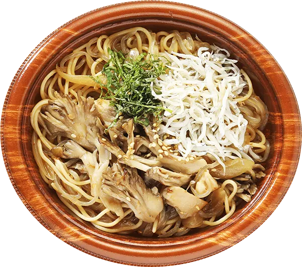 | 原材料 | こんにゃく(国産)、スパゲティ、まいたけ、たまねぎ、しょうゆ加工品、いわし稚魚、食塩 、醸造風味料、かつお削りぶし、食用オリーブ油、いりごま、青しそ、風味調味料 |