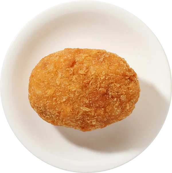 国産男爵いも100%を使った「じゃがいも」が主役のコロッケです。粗めにつぶしたホクホク食感が魅力で、味付けは極限までシンプルに仕上げることで、直売所らしく素材の味を前面に出した商品になりました。シンプルだからこそ何個でも食べたくなる。まさに素朴な味わいが好評です。