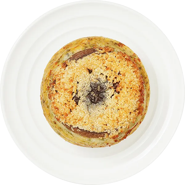 地元宮若で農家を始めた夫婦の無農薬椎茸を使用しました。とにかく新鮮で香りが豊かな椎茸です。この椎茸に無添加自家製明太バターマヨネーズ、国産の青さを生地に合わせました。自家製明太バターマヨネーズも地元宮若の地黄卵を使用した自家製です 。